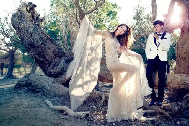 这套婚纱照花费了超百万,在内蒙古拍摄,一对新人搭配着戈壁的风沙景色,唯美又浪漫。