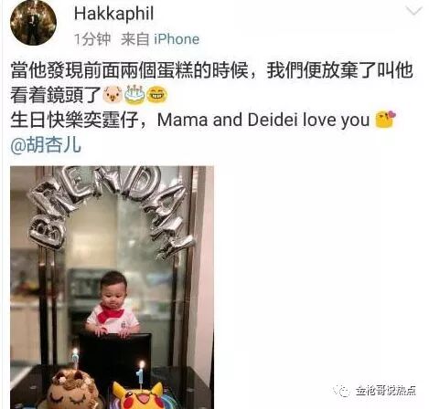 时间过得真的非常快,转眼间,他们的儿子已经一周岁了。近段时间,也是迎来了小小奕霆一周岁的生日。在儿子一周岁生日来临之际,夫妇两人微博发文提前为儿子庆生。大家应该可以看到10月9日李承德发布的微博。在微博中,他这样写道:“当他发现前面两个蛋糕的时候,我们便放弃了叫他看镜头了,生日快乐奕霆仔。”并且,还配了一张儿子的正脸照。从照片中我们可以看到,他们的儿子小奕霆面前有两个蛋糕,不用猜我们就知道,肯定是爸爸妈妈特意为他准备的。