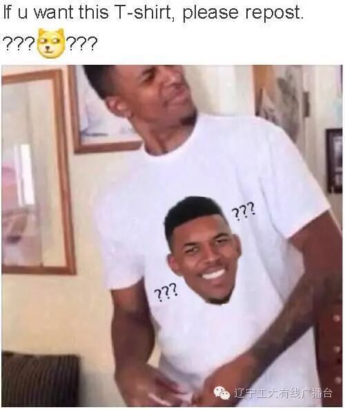因为他发现有人把他的头印在T-shirt上