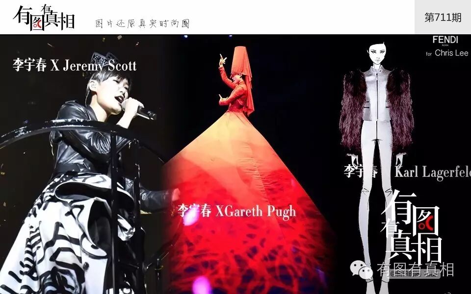 李宇春的演唱会就是一个时尚秀场,星光熠熠,基本每件演出服都出自大师之手,老佛爷、Jeremy Scott、Gareth Pugh、高缇耶等都为她设计过演出服,当然现在还要加上王大仁和Alessandro Michele,要知道,在国际上,也仅有麦当娜、蕾哈娜、碧昂斯等“天后级”歌手有过演唱会“专属设计”的待遇,而李宇春一人的演唱会就极其如此多大师,在国际上也实属罕见!