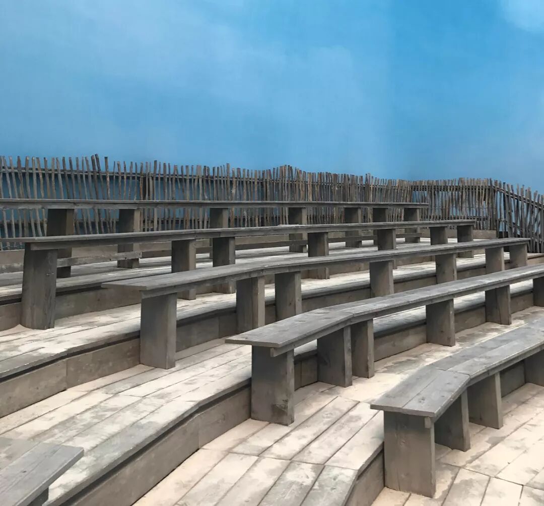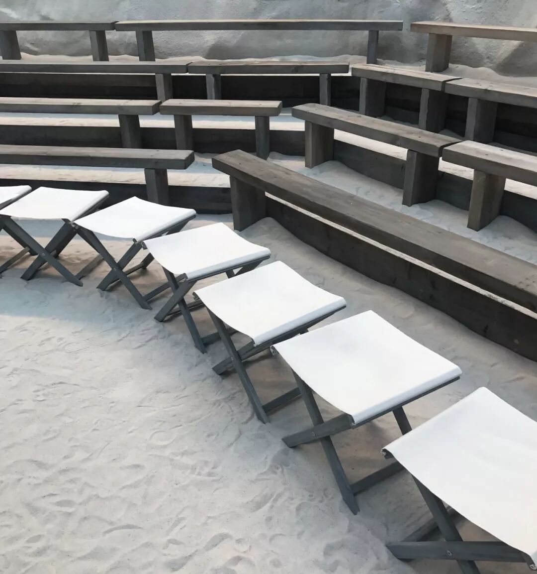 看秀观众的座位是木质座椅和小马扎,四周还有木栅栏,就像置身沙滩看一场精彩表演。