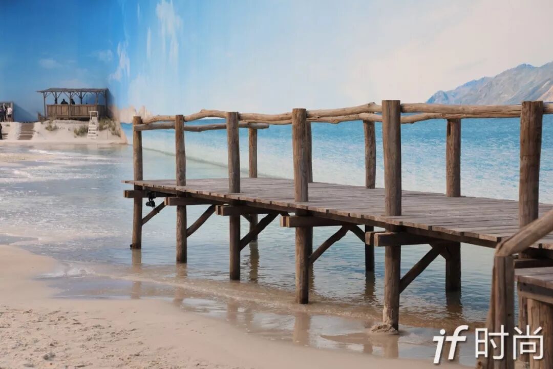 最神奇的是沙滩,有湿沙、干沙,还有硬沙,老佛爷真的是细节大师,一切布置精益求精,完美。if 姐在拍照时,还有工作人员贴心提醒,小心踩到湿的沙子危险呦。