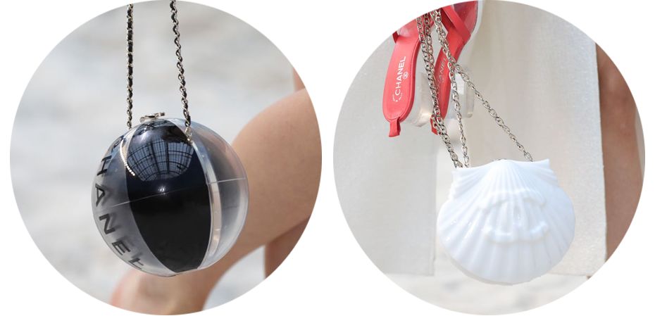 还有就是两款有趣的晚宴包,也特别符合主题,一款是透明的球状包,一款是贝壳形状的包。▼