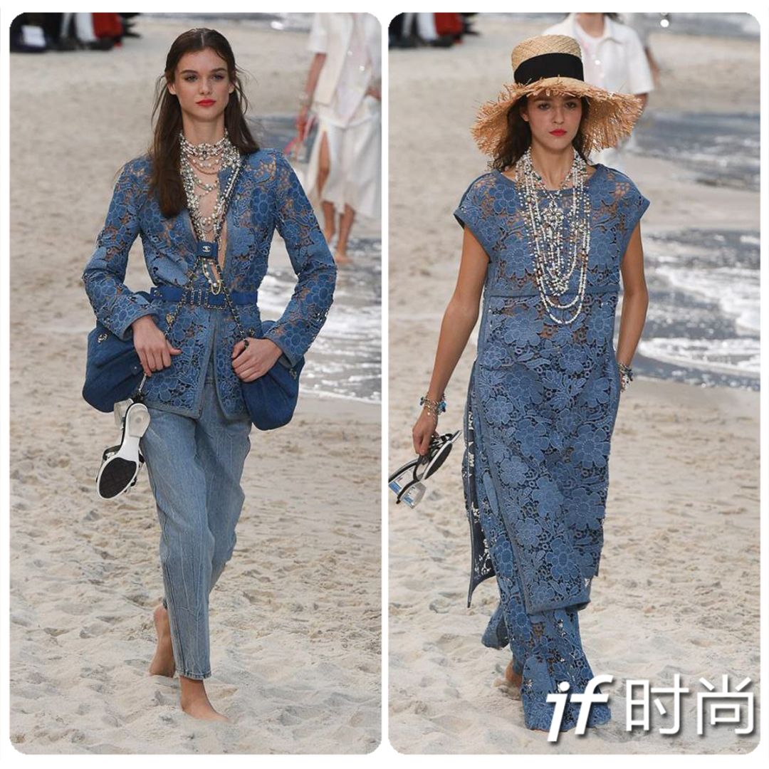 像蕾丝,蓝色蕾丝也呼应了本季的主题。▼