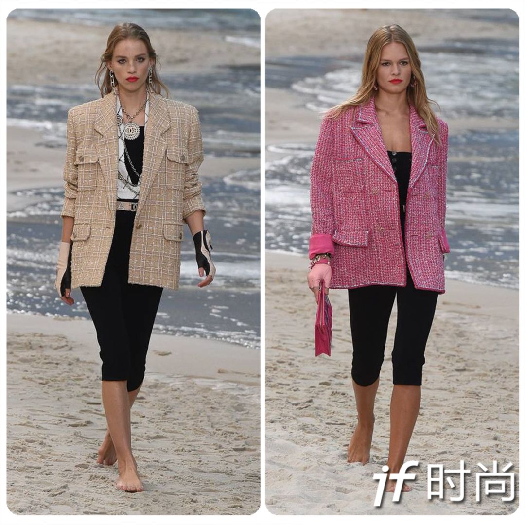 CHANEL 本季大秀也将骑行裤与品牌经典的斜纹软呢上衣进行混搭,上衣采用的是oversized 设计,与紧身的骑行裤搭配让整个 LOOK 更有层次感。