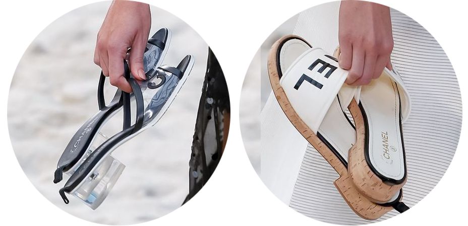 首先是模特们全程拎着的鞋,有两种值得大家考虑入手,一种是PVC材质配以透明底的凉鞋,一款则是皮革质地配以木质底的凉鞋。▼
