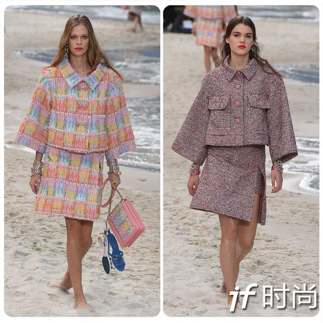 经典的斜纹软呢自不用说,但今年的斜纹软呢套装在剪裁上更偏向大廓型。而裙装部分也有些小心机,裙摆侧面开衩,露出内层的迷你裙。