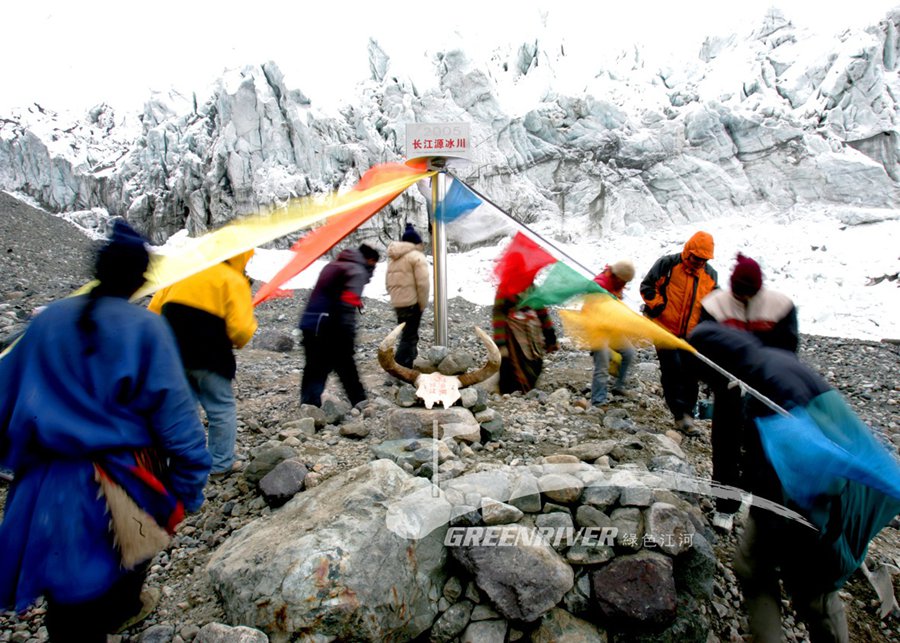 图08 按照当地藏族人的风俗,以最神圣的转经方式举行长江源冰川标志碑的落成仪式