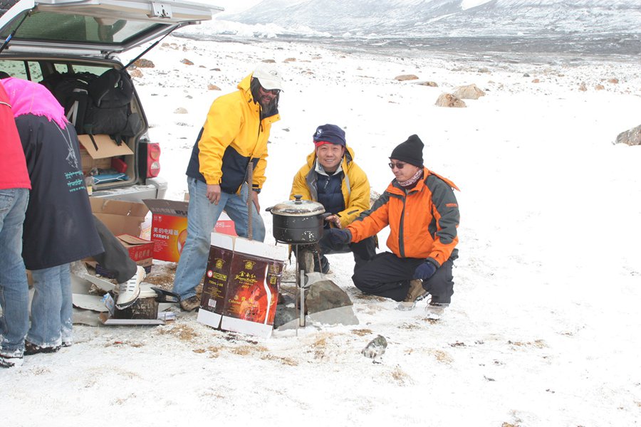 我们首先要组织移植冰川考察队,通常是8到12人,包括科学家和志愿者。每年5月1日从成都出发,经过红原、若尔盖、合作、化隆、西宁、青海湖、格尔木,让团队逐渐适应高海拔。然后到索南达杰保护站住一晚,最后在沱沱河沿或雁石坪补给,给车换上泥地轮胎,加满油。第6天进长江源冰川,工作2天。从沱沱河回程快一些,4天就到成都。整个行程大约两星期。长江源冰川没有路,只有一个大概的方向,到处是草甸、沼泽、石滩和河流。我们每次进去,没有走过相同的路。进去后出来,又是一条新路。2005年那次我们被风雪困了几天,天一放晴,当机立断往回赶,一路不知陷车、迷路了多少次,深夜11点半回到雁石坪。那天傍晚又来了暴风雪,我们时候才知道,在那场大风雪中,附近一支石油勘探队有15人遇难。