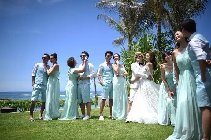 昨天包贝尔和包文婧在巴厘岛大婚,没请媒体,主要是一群好友的热闹聚会