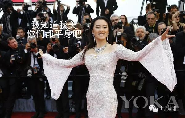 巩俐以这种女王的架势出现在红毯上,这动作让我只想到一句话:我知道我美,你们别跪了,起来吧!这种雍容华贵的样子,舍我其谁的自信与气场,恐怕范冰冰来了也是要甘拜下风的。