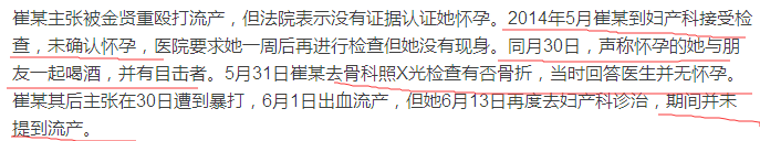 当时法院就表示女方声称第二次怀孕后被金贤重殴打致流产的事情根本没有证据。