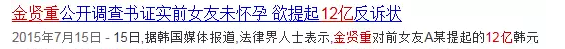金贤重这边则公开调查书证实当时前女友未怀孕,也就不存在曾经殴打她导致流产的事情,并提起了12亿的反诉讼。