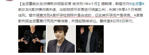 今天上午收到推送,金贤重的前女友涉嫌欺诈损毁名誉,被求刑1年4个月。对,就是那个控诉金贤重家暴并导致她流产的A某。