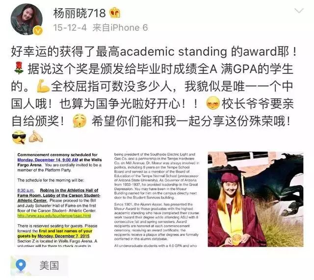 2011年,深思熟虑之下杨丽晓决定放弃演艺事业,继续求学。她远赴美国亚利桑那州立大学深造,主修传媒学。