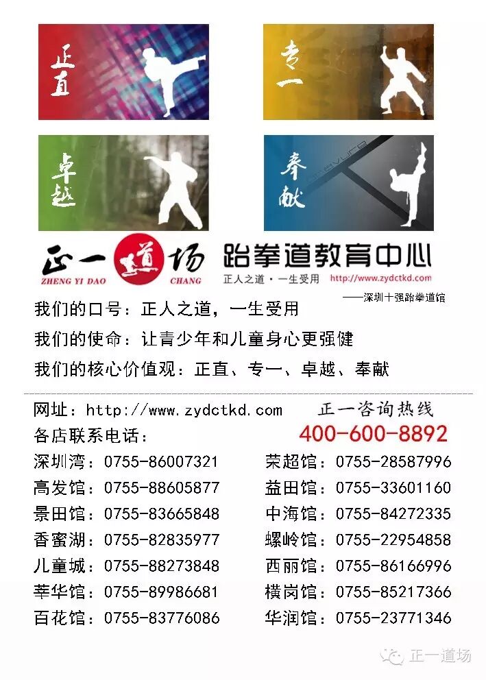 家长评语:练习跆拳道后,懂得了有付出才有收获!中间请假有段时间没有练习,回道场之后,教练说生疏了很多。也深刻理解了,跆拳道五大精神:礼仪、廉耻、忍耐、克己、百折不屈!