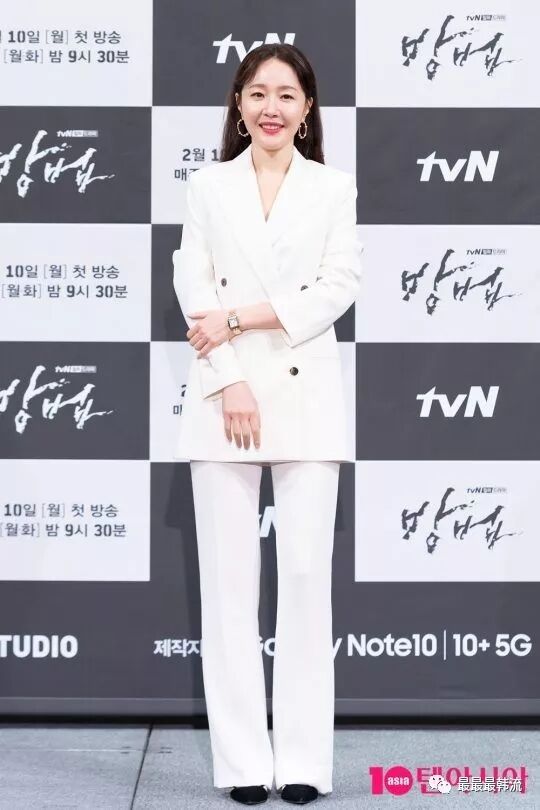 一身白色西装的严智苑展现了利落帅气的一面,气场全开。