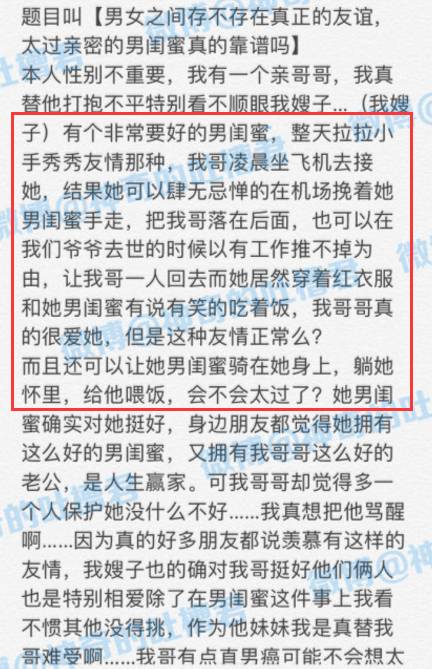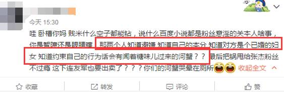 而网上一段名为“嫂子有一个男闺蜜”的吐槽,被网友扒出是张杰毒唯投的稿,文中把谢娜何炅在机场聊天写成“机场跟男闺蜜秀恩爱把哥哥落下”,把谢娜与何炅在快本做游戏写成“骑她身上,躺她怀里”的羞耻play小黄文↓