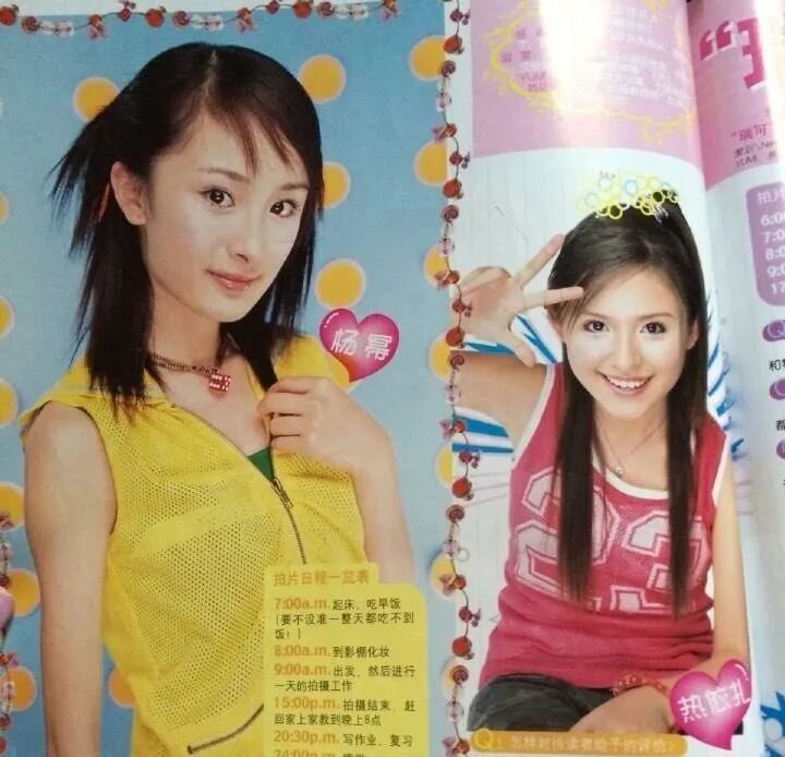 热依扎和杨幂都是1986年生,也同是在2001年被《瑞丽》选中做模特,后来又先后考上了北京电影学院表演系。