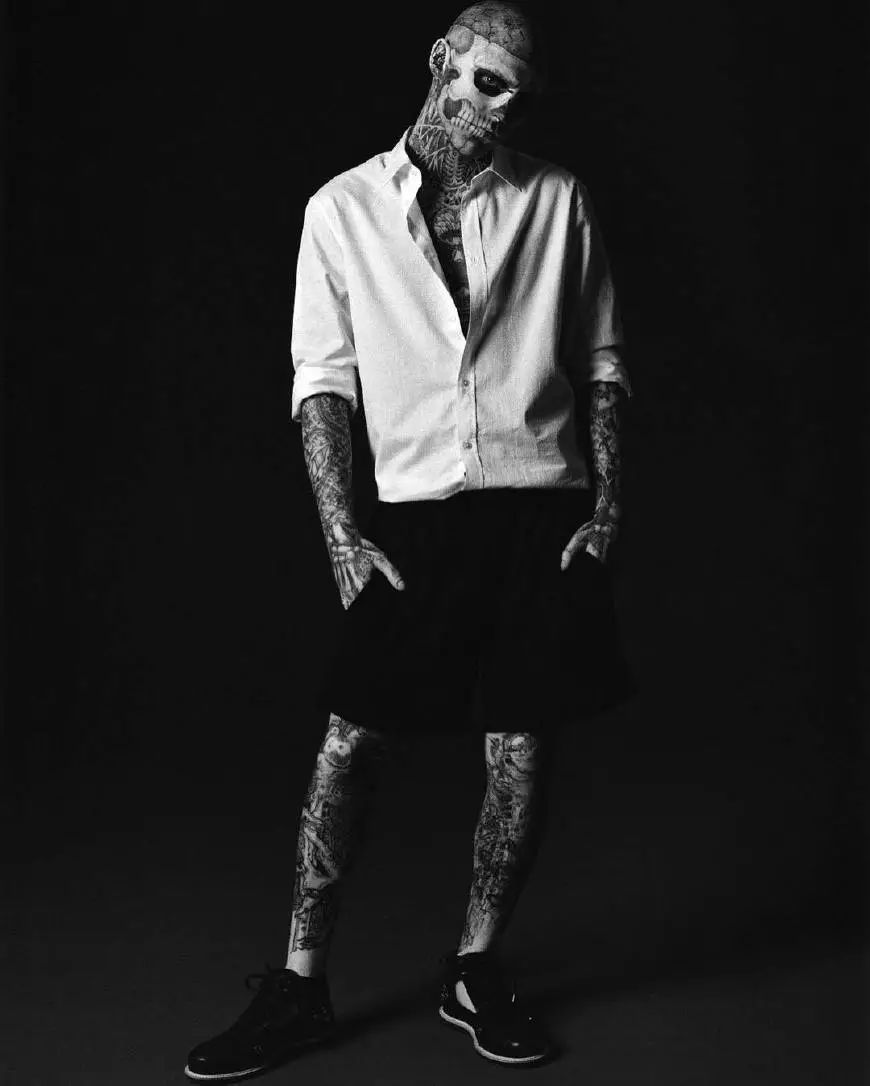 时至今日,Rick Genest依然是两项吉尼斯世界记录的保持者:最多的昆虫文身,176处;最多人骨文身,139处。
