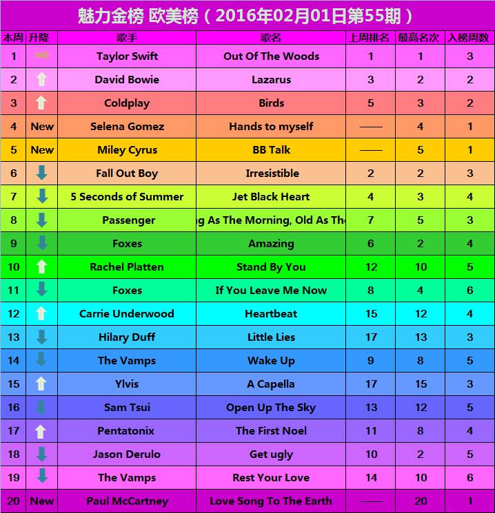 那么本期欧美榜其他歌曲表现如何呢?来看彩虹榜单!