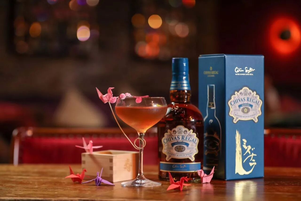 不仅在味觉风格上进行东西碰撞,以梅酒混搭芝华士•水楢,并且在视觉呈现上以盐渍樱花作衬,将东风西渐进行到底。