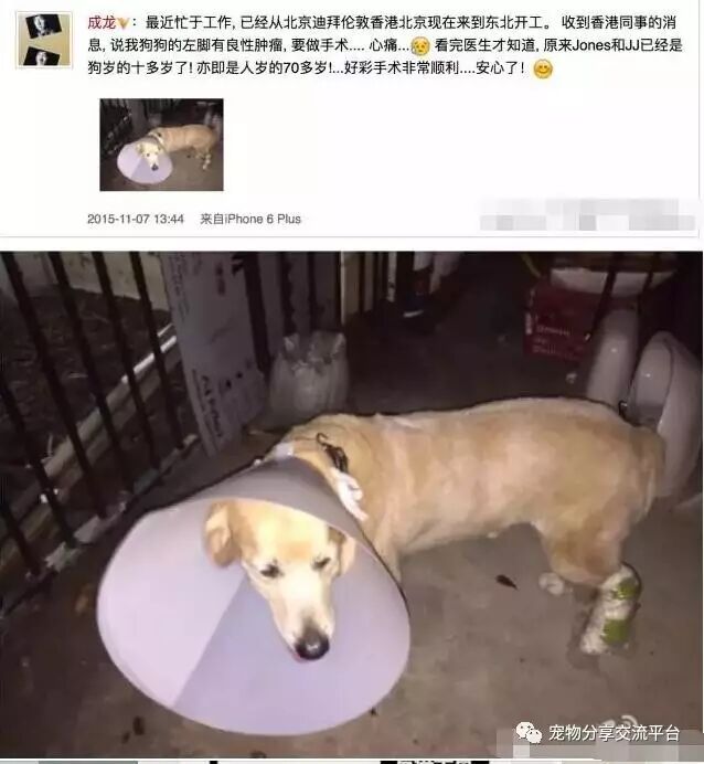 由于两只狗狗已经10多岁了,走路变得缓慢。各种衰老的疾病也多了起来。其中一只狗狗还需要动手术。当时身在戏场的成龙大哥非常担心这2只狗狗,差点影响到工作。好在手术很成功,让成龙大哥如释重负。