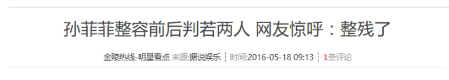 粉丝们纷纷表示要“粉转路”,很多媒体更是把孙菲菲当成整容失败的女星来报道,直呼她“整残了”。