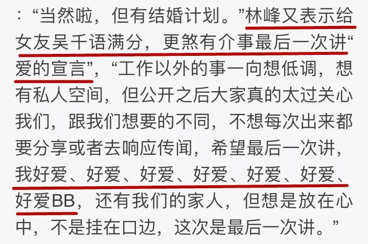 先是第一次主动承认恋情,和头一回谈恋爱的愣头青一样在记者面前讲了七回“好爱千语BB”。