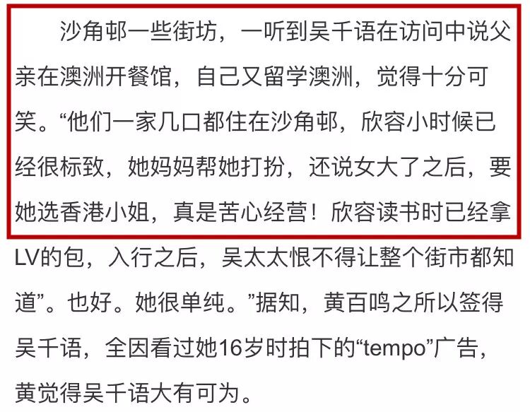 在向来直接毒舌的港媒这里,吴千语就是拜金虚荣的代表▼