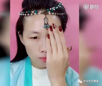 还有戚薇《美人心计》的扮相,这是没画的左脸↓