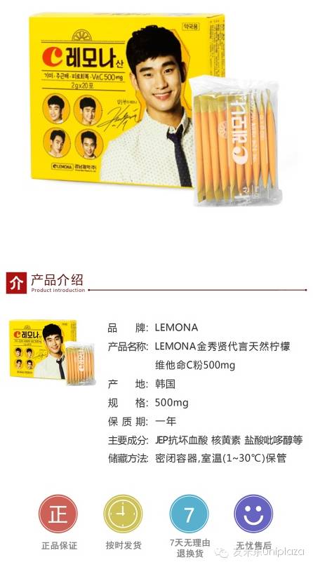 提取柠檬高浓度的维生素C 由来自星星的都教授(金秀贤)代言 一天来一包,健康,美白so easy!