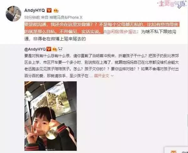黄毅清发文后,引起网友的批判了,“为啥不私下跟她沟通,非得老在微博上骂来骂去的”。面对网友的问话后,黄毅清终于说出了实情。:“要是能沟通,我还会在这里发微博??不是每个父母都无私的,比如有些当母亲的就是那么自私。不带偏见,实话实说。”