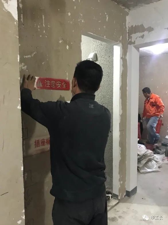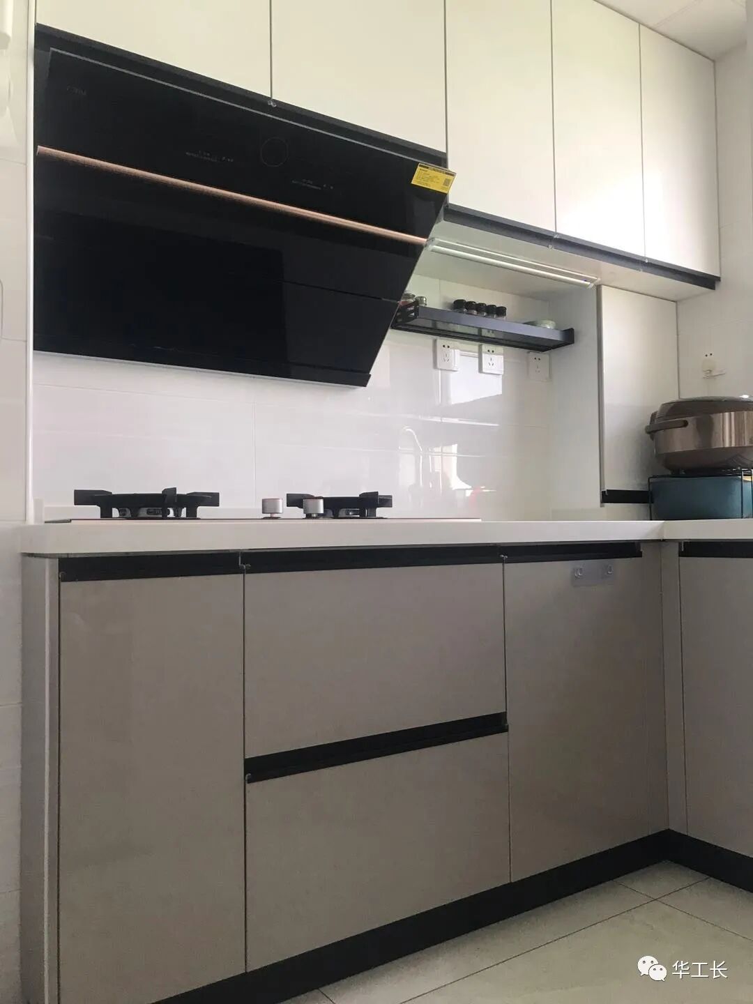 他这种极度自信谁来过招都不怵的态度也折服了我那位傲娇小公举属性的老公,两个人越质疑越亲近,我家“小公举”还经常靠搂腰抱肩这招儿支使他多干活,一会儿说厕所要安极窄边框金属门,你给我把贴好的墙砖撬了重新打磨门框,误差要在5毫米之内,于是华工就会扛着机器亲自上阵亲手打磨;一会儿说美缝太贵了,我家的木纹砖询价要45一平米,你给我推荐个物美价廉的,华工马上开启人脉搜索功能,分分钟给你推荐质量满意价格称心的商家;一会儿说开发商留的网线太次了,你得给我换成超六类的……不仅如此,华工还主动赠送了厨房防水、把原本的美巢800JJ腻子换成了800GQ高耐水腻子,只是因为我们这房子盖得确实质量一般,他担心我们入住后会有后顾之忧……凡此种种不胜枚举,反正有困难找华工就对啦!