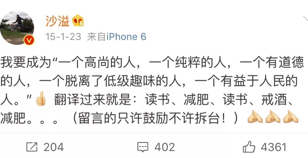 沙溢年初立下的减肥flag,