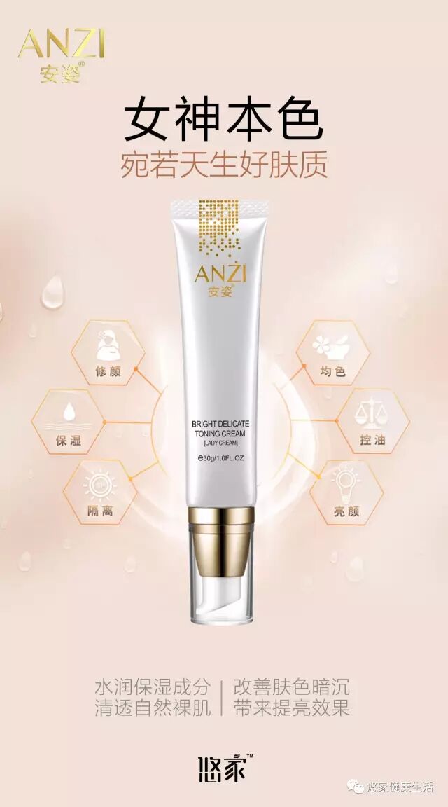 安姿女神霜,轻薄、美白、水润、清透、提亮,造就恰到好处的素颜!简单一抹,造就素颜女神!