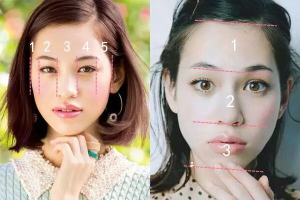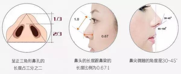 从正面看,鼻子的完美比例主要是根据脸型来的,就是常说的三庭五眼!