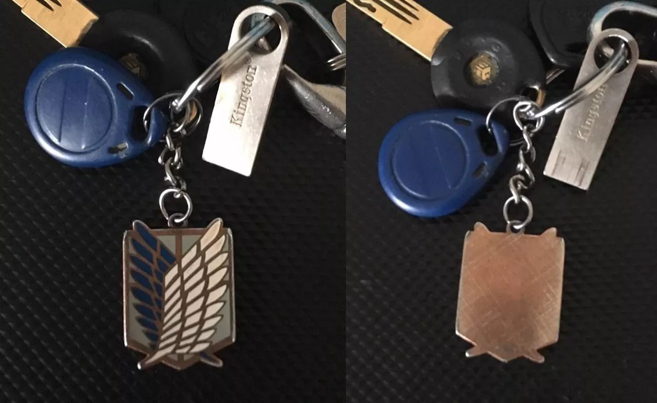 对宅向市场没兴趣一向没兴趣,这些年就买了两件周边,一件自由之翼的卫衣,一块自由之翼的钥匙挂饰。前者因为选择白色而总是谨慎地穿谨慎地洗,后者因为随身携带,已经泛出暴露岁月的锈迹。原因无他,我喜欢这个标志,相信每个时代都有着调查兵团与进击的巨人,总有着指指点点冷嘲热讽的人群……
