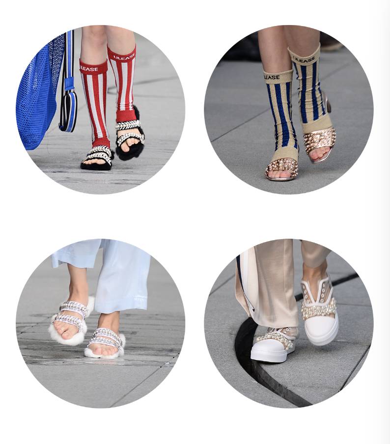 条纹高筒袜搭配链条凉鞋,柔软毛毛混搭金属元素,运动鞋也可以低调奢华,这样的配色太惊喜,只有你想不到,没有做不到。