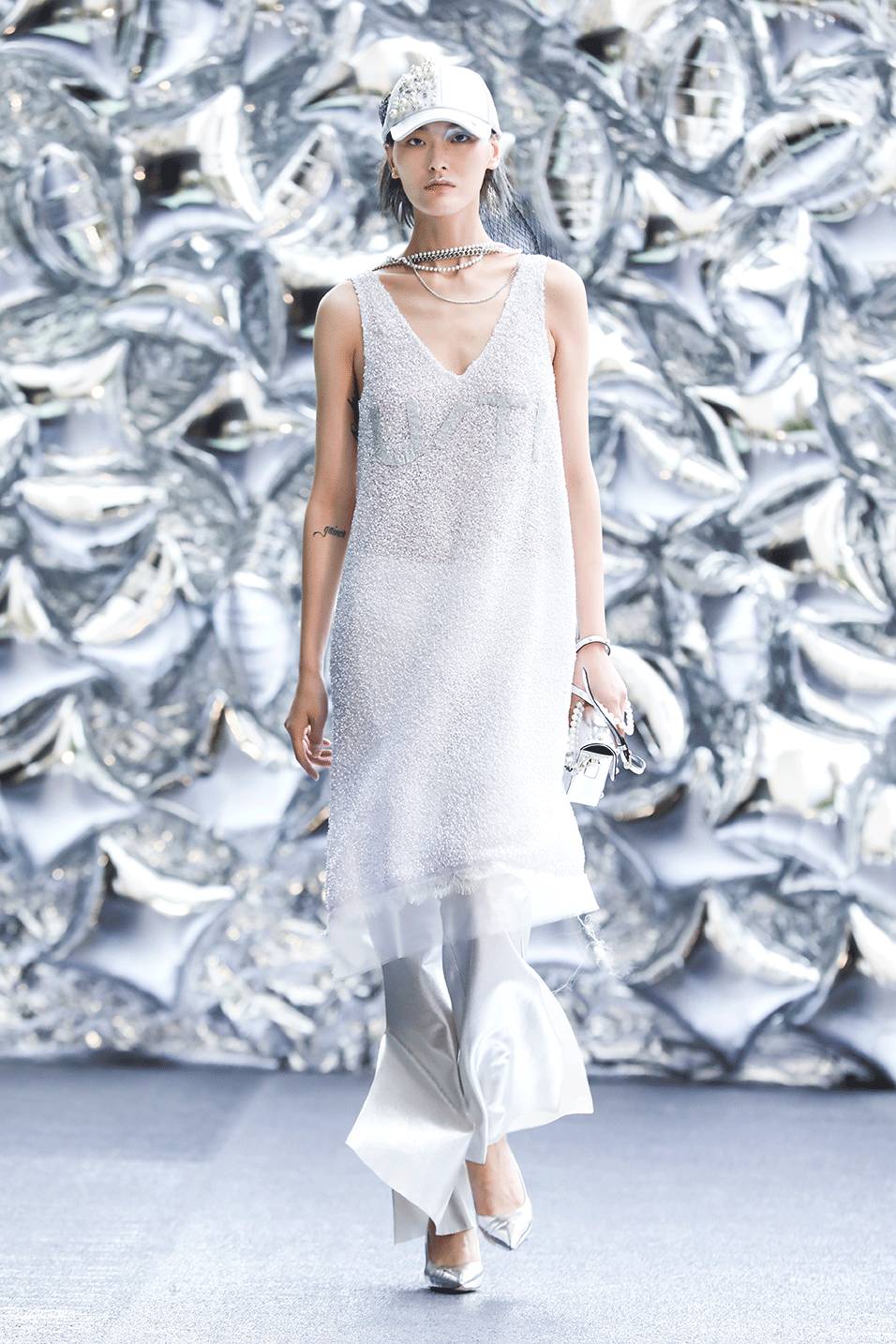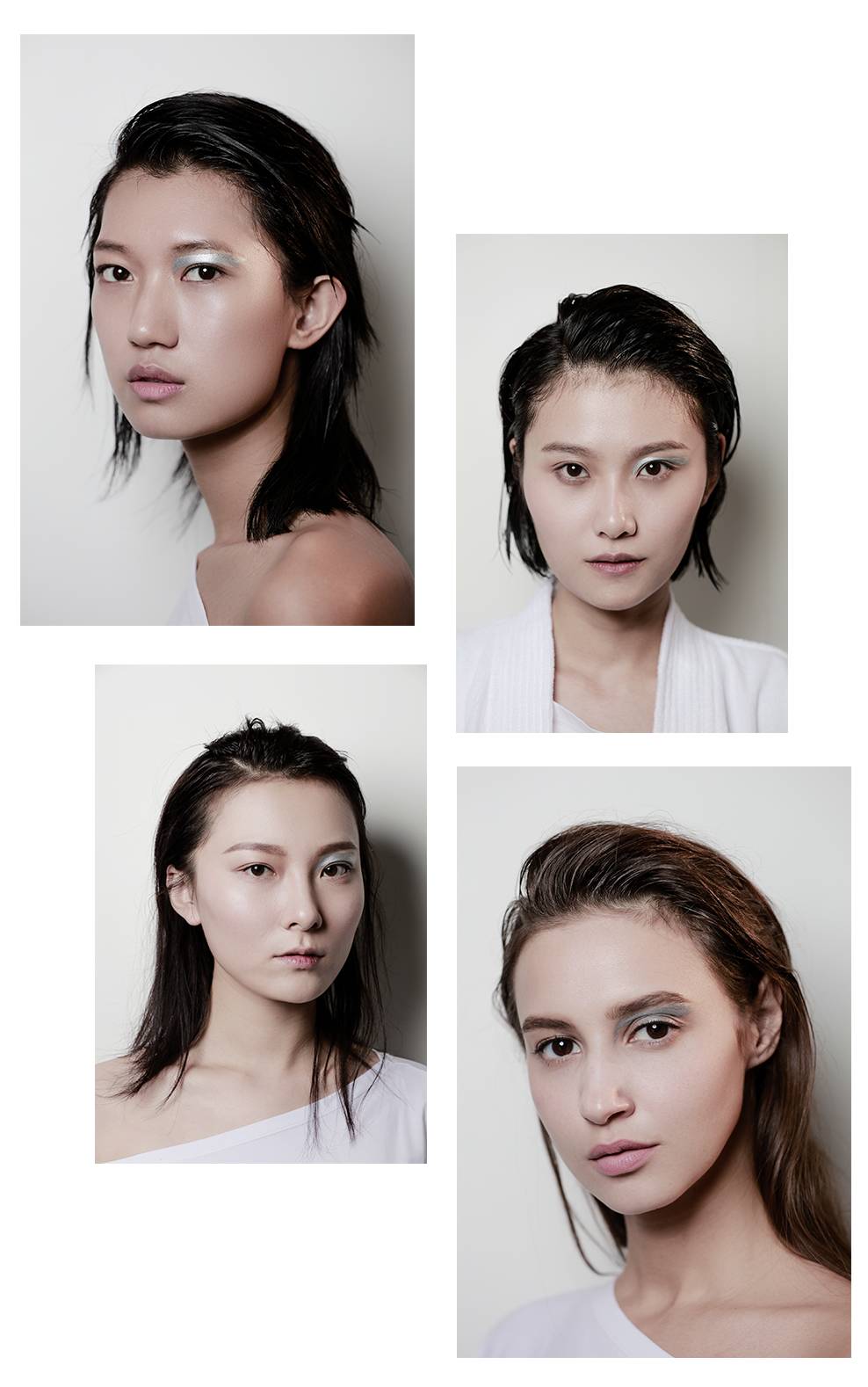 模特妆容依旧延续清透性的裸妆,淡淡一抹银色眼妆,为干净的妆面带来了趣味和现代感。