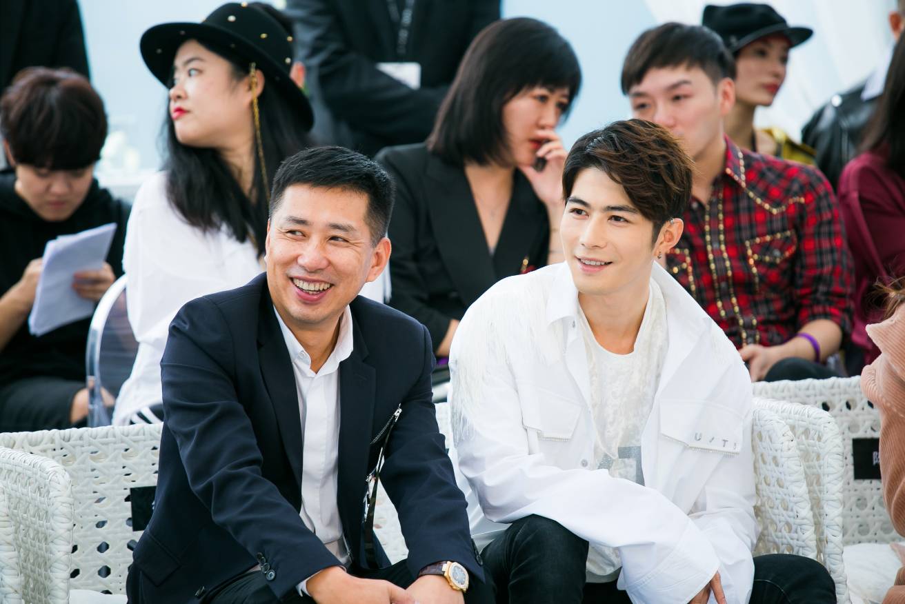 特邀嘉宾陈学冬、陈燃、Linda、还有U/TI的老朋友火火、Peter老师与品牌掌门人徐志勇先生与陈迷丽女士共同观秀,你们的“男朋友”冬冬身着U/TI 18SS定制款,简直好看到犯规。