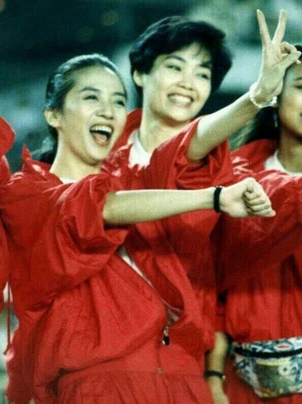 梅艳芳和徒弟许志安、草蜢、谭耀文