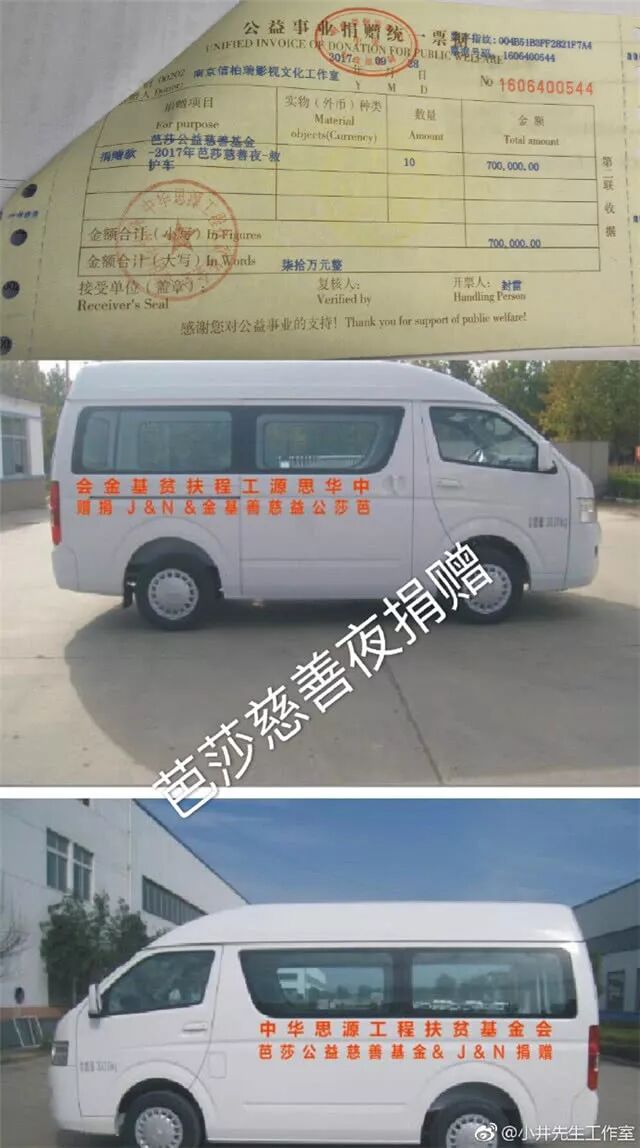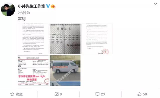 此外井柏然方还晒出此前井柏然做的一些慈善事迹,比如将井柏然字体库的一百万收益捐出。