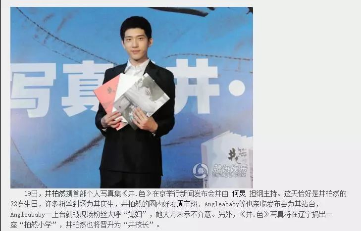 之后的采访报告说,井柏然有表示将写真收入用在慈善上,建立希望小学,已经将前期款打了过去,如果最后写真集的收入不够,自己也会出钱补上。