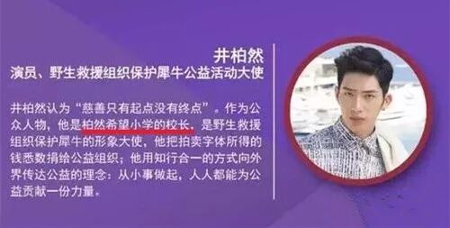 在2016年1月份,井柏然获得了公益100人的称号,在介绍栏那里,井柏然的身份已经变成了“柏然希望小学的校长”。