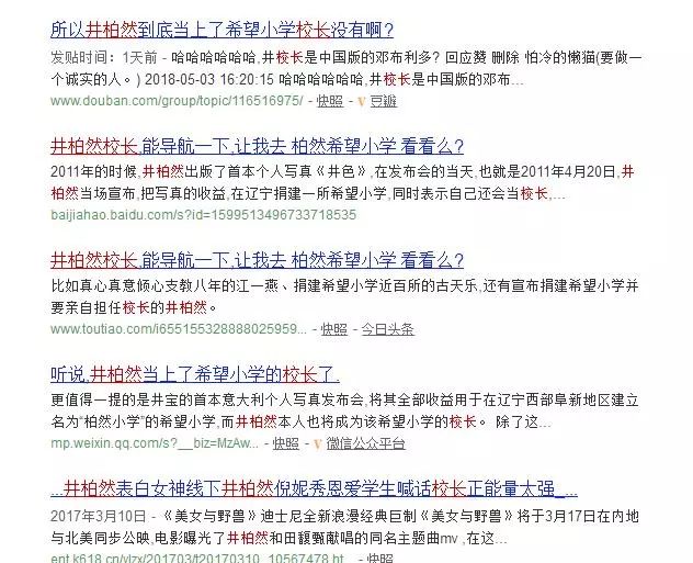并且,7年过去了,关于井柏然希望小学的通稿没有停止,但是大家发现井柏然的希望小学根本就是不存在,压根儿也查不到井柏然捐建的希望小学。