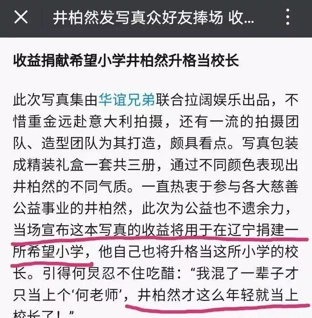 当天,井柏然就有说要把写真集的收入用在辽宁捐建一所希望小学,还说自己要当希望小学的名誉校长!