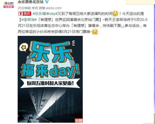 ① 在@永乐票务北京站 微博中找到这条微博↓↓↓