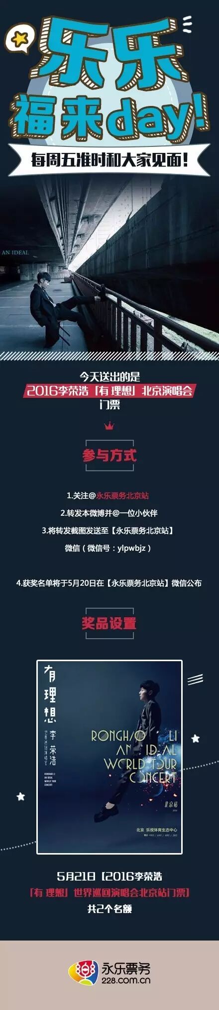 【5月21日,2016李荣浩「有 理想」世界巡回演唱会北京站门票】哦~