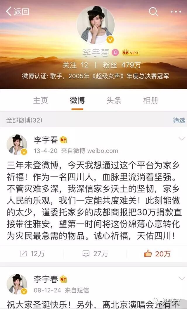 很多人玩微博是为了自己的偶像,而和大多数明星一样,李宇春也在玩微博,这是一个与粉丝互动的平台,是一个宣传自己的平台,可是她从2010年到2017年,中间在13年只发了一条微博。